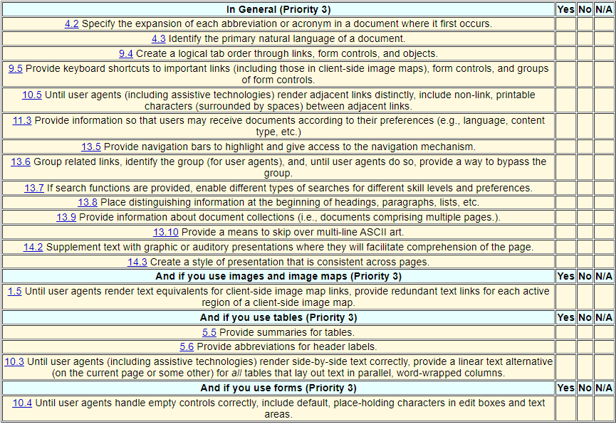 And lastly, there a priority checkpoints that you must follow to make sure your website is accessible: