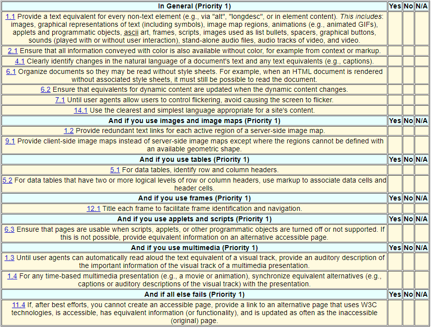 And lastly, there a priority checkpoints that you must follow to make sure your website is accessible: